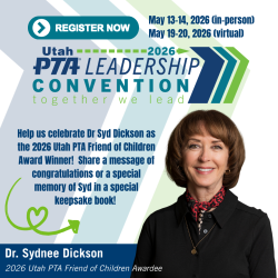 or Cammy Whitchurch, Utah PTA President-elect and Convention Chair at cammy@utahpta.org