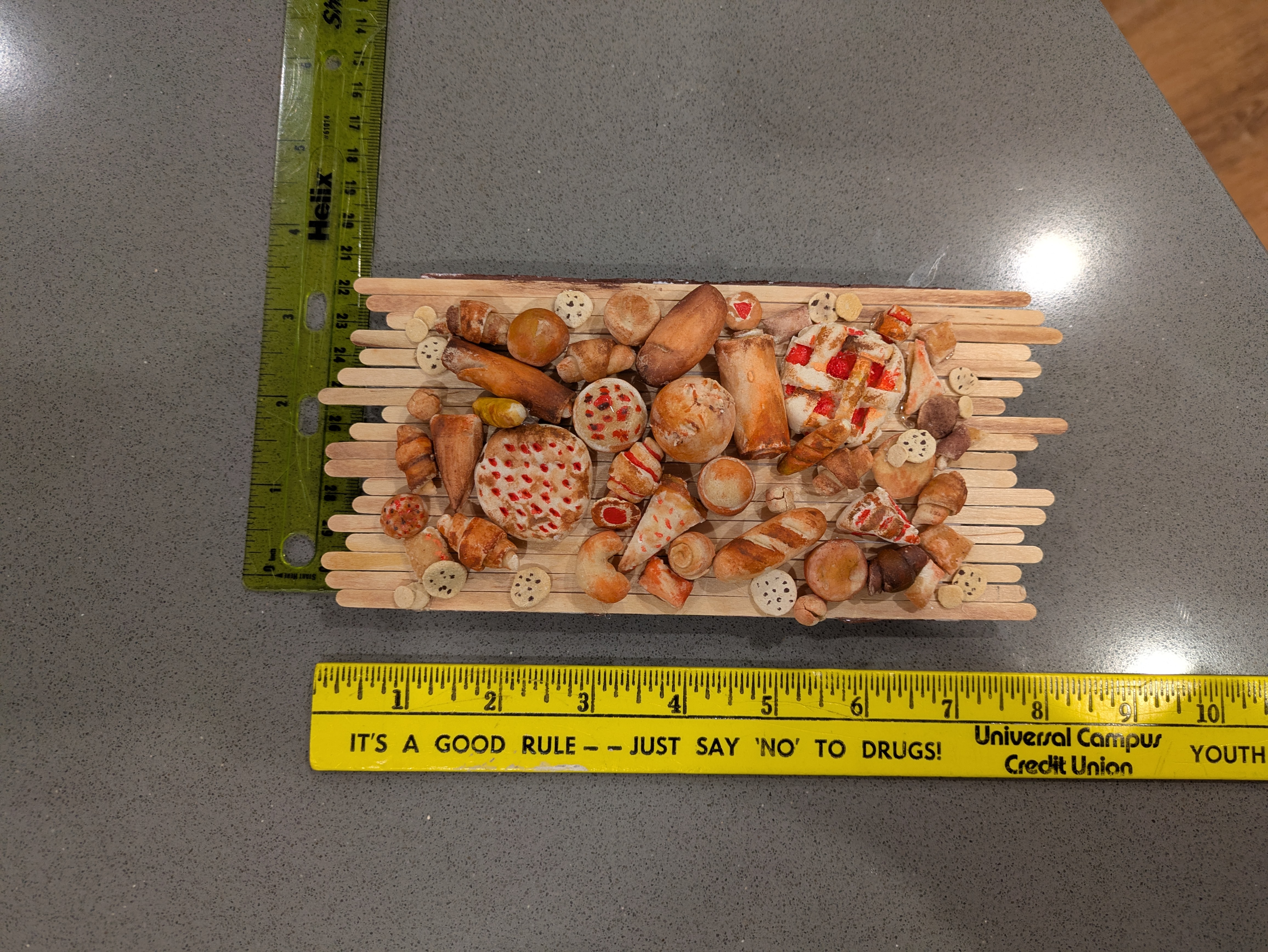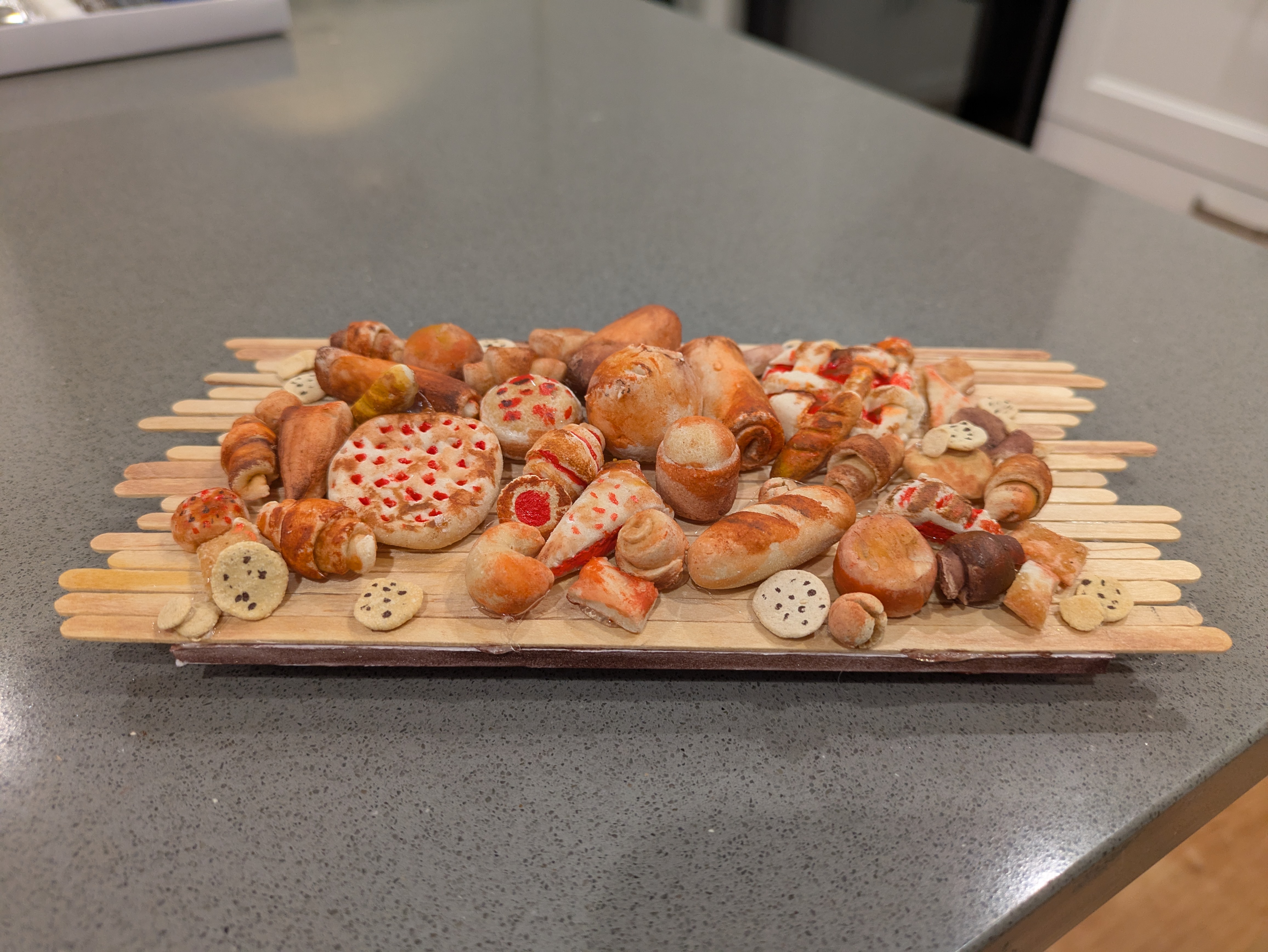 I made this assortment of pastries to reflect the diverse options of people we have here in our community and all around earth, each made with a different technique and ingredients, but gathered in one place all the same. I like the fact that usually, when people go into a bakery to buy something, they typically buy many different things, rather than everyone getting the same exact thing. It shows that we as people have our own unique tastes and even though that may mean that everybody doesn't love us, that just shows that no one goes completely unloved either.