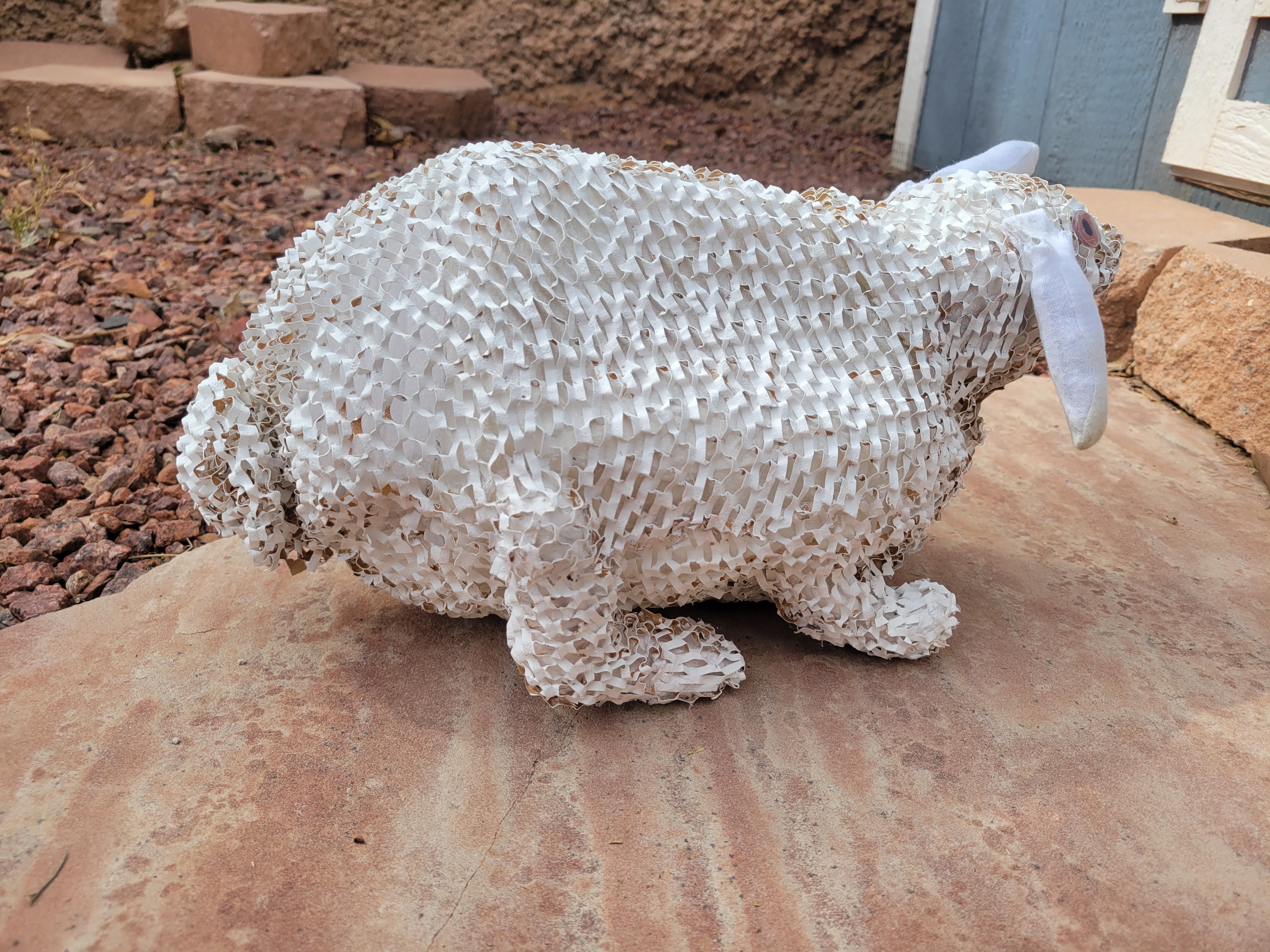I am accepting imperfection by taking imperfect materials bound for the trash, like empty milk jugs, paper packaging and an old dirty glove, and instead using them to create something new and unique. Rita may not be perfect, but just because something isn't perfect doesn't mean it can't be beautiful.