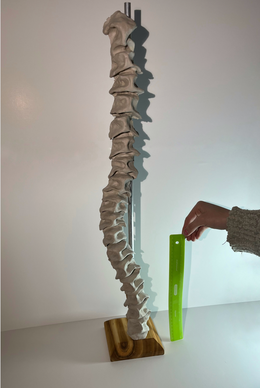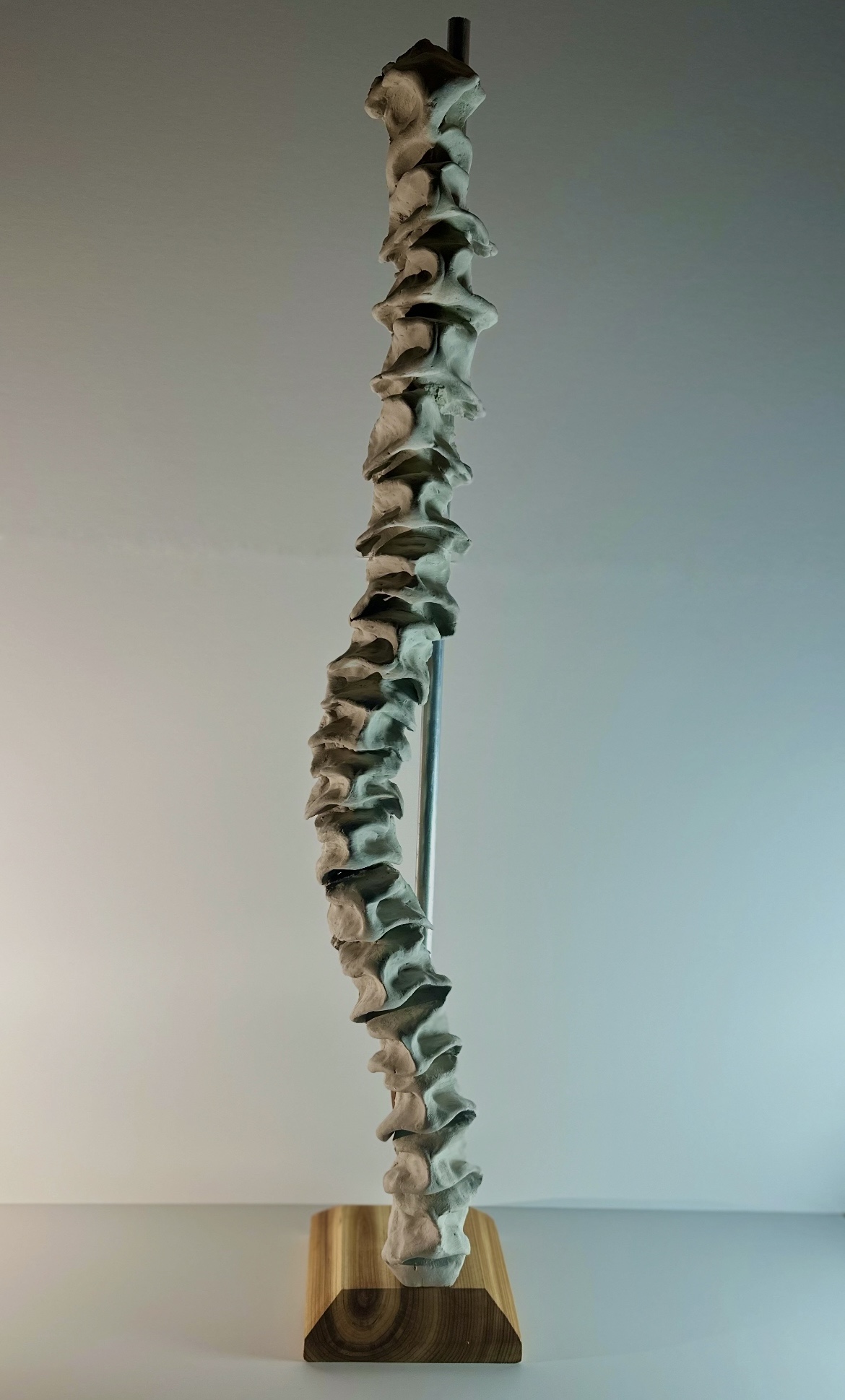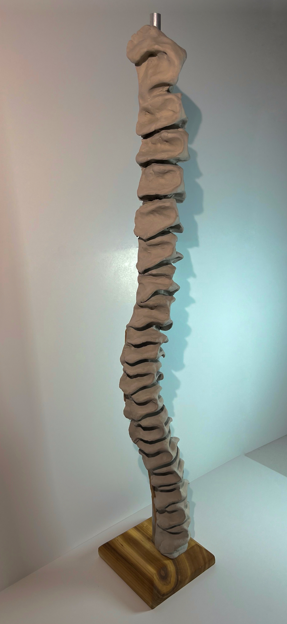 My journey with scoliosis has been a long journey of both physical and emotional transformation. My spine has never aligned with traditional standards of the world. Through creating a replica of my spine I’ve been able to accept my imperfections. Each twist and curve I sculpted into the clay is a testament of struggles and resilience my body has gone through. This project isn’t just about replicating my physical deformity; it’s a reflection of learning to embrace the beauty of imperfection. I hope to convey that our perceived imperfections hold a strength and they deserve to be celebrated, not hidden.