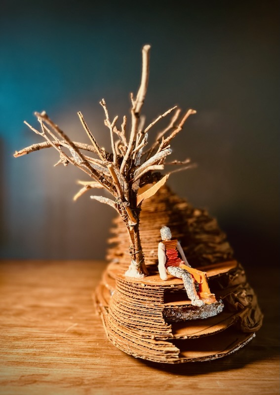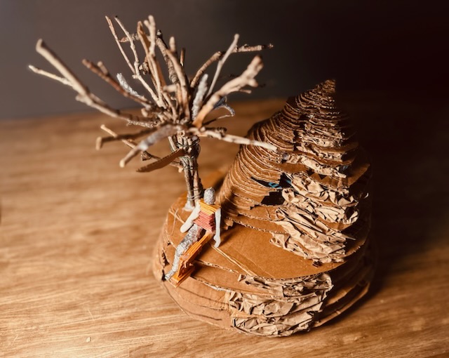 This piece of 3D art reflects the idea that beauty can be found within imperfection. The artwork was created using what most people would consider trash- materials such as cardboard, wire, dead branches, and aluminum foil. It symbolizes how what is seen as "trash" can come together to create something meaningful. These imperfections represent our own individuality, showing it is our flaws and differences that make us unique. The tree in the artwork is a metaphor for people who support us, and shelter us throughout our beautifully imperfect journey.