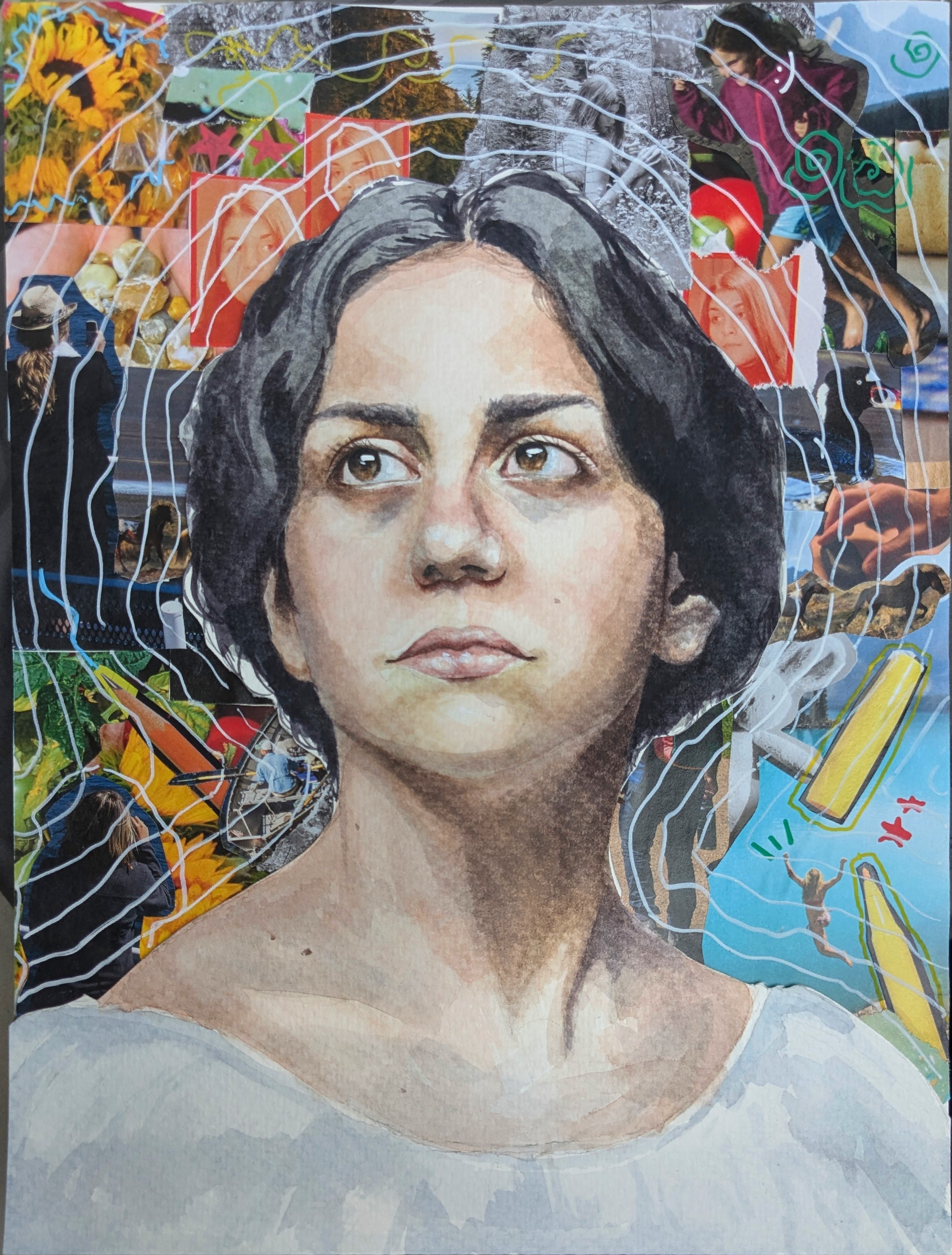 We are all mosaics of who we have loved. We are imperfect collages sewn together from the pieces of our lives. The first step to accepting imperfection is to learn how to sew together your pieces to become who you are. My piece represents the beauty in being imperfect and how being imperfect is beautiful in and of itself.