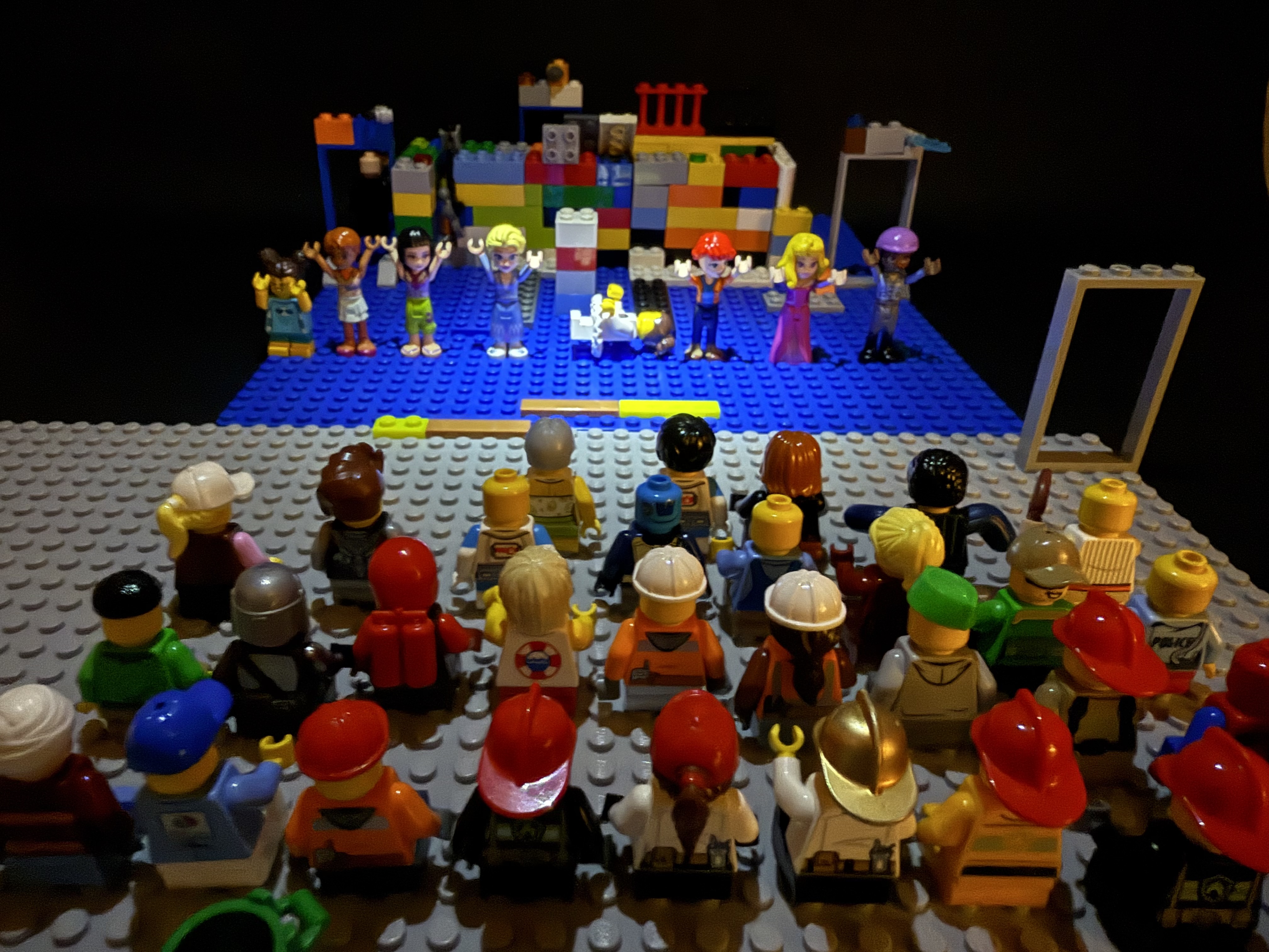 I learned about imperfection from my 3 year old sister. In her first dance performance, she got scared and laid down on the stage for a lot of the dance while everyone else in her class did it the way they were taught. Even though she made this big mistake, she chose to keep dancing and has performed on a big stage since. I want to be like her, because it takes courage to be imperfect and keep trying anyway. I created this Lego scene of this experience all by myself and came up with the idea all by myself.