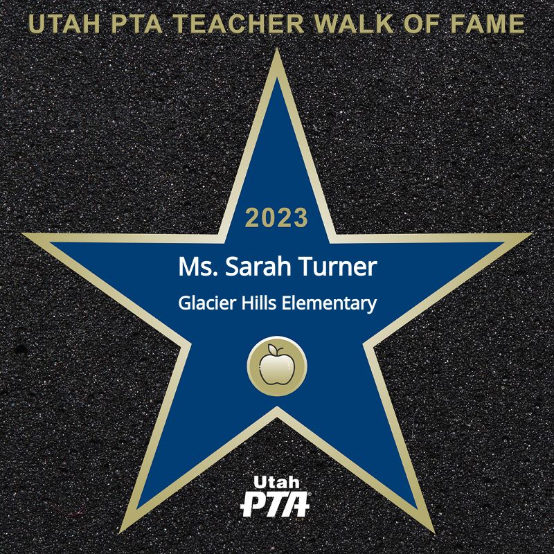 Share this star by clicking the share button above. Add the hashtag #utahptastar and tag the teacher if you can. Invite others to nominate their teachers and help this go viral! Stars are displayed in the Utah PTA Teacher Walk of Fame Gallery and posted on the Utah PTA Facebook page.